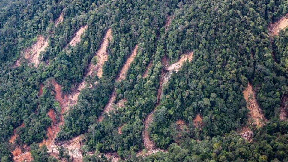 An aerial view shows damage after floods and landslides in Central Tapanuli, North Sumatra, on December 21, 2025. Photo Source: AFP