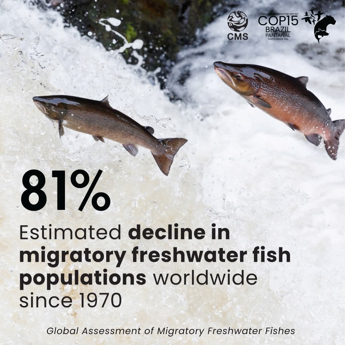 The report, released under the Convention on the Conservation of Migratory Species (CMS), highlights that migratory freshwater fish populations have plummeted by approximately 81 percent since 1970, marking one of the steepest declines among global wildlife groups.