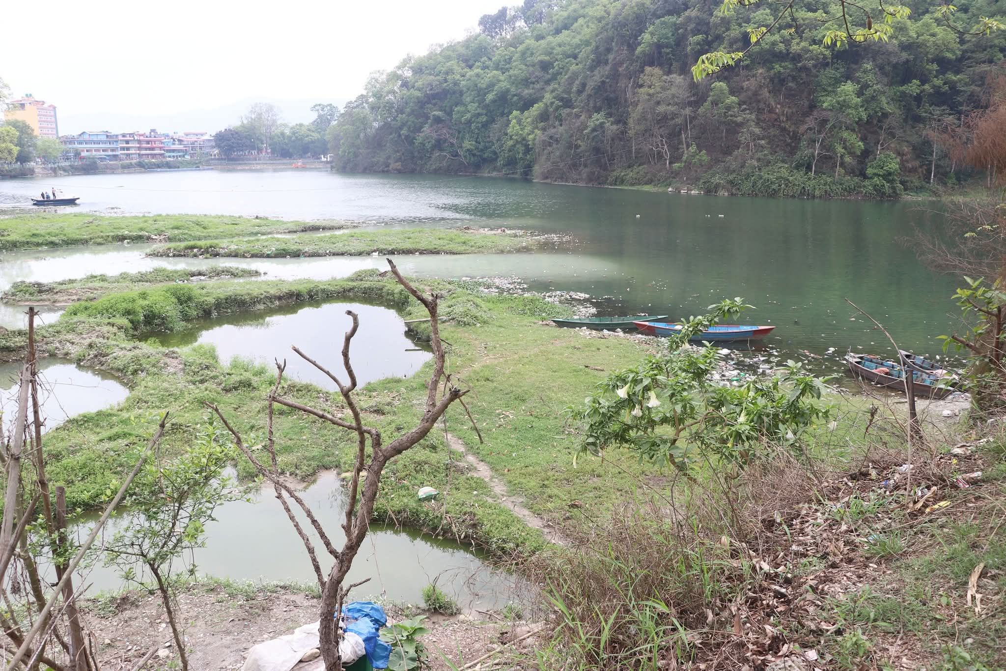 Recent observations indicate that Firkekhola, which flows through the densely populated areas of Pokhara Bazaar, is carrying increasing amounts of plastic waste, sediment, and debris directly into the lake. The attached image highlights visible signs of pollution, including scattered plastic materials along the riverbanks and murky water entering the lake system.